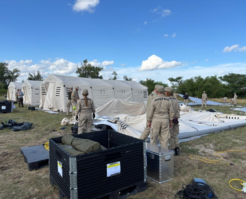 Beim AFDRU Basislehrgang für internationale Katastrophenhilfe trainieren Berufs- und Milizsoldat:innen gemeinsam mit zivilen Einsatzorganisationen. Durch die gemeinsame Ausbildung werden die Abläufe und Fähigkeiten optimiert, um im Ernstfall effizient und effektiv zusammenzuarbeiten.