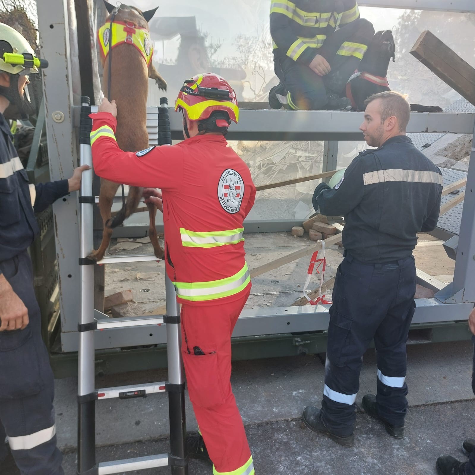 Bei der Leistungsschau des Österreichischen Bundesheeres am Nationalfeiertag waren auch AFDRU (Austrian Forces Disaster Relief Unit) Hundeführer mit ihren Hunden mit dabei. Christoph Umgeher mit „Austrian Legends Agent Pax“ vertrat die ÖRHB und zeigte den zahlreichen Zuschauern, wie unsere Rettungshundeteams bei der Menschenrettung in eingestürzten Häusern arbeiten. Gemeinsam mit einem Kollegen der Feuerwehr Kapfenberg wurden die begeisterten Besucher informiert. Die Hunde konnten eindrucksvoll ihr Können auf den Trümmern am Heldenplatz in Wien präsentieren.
