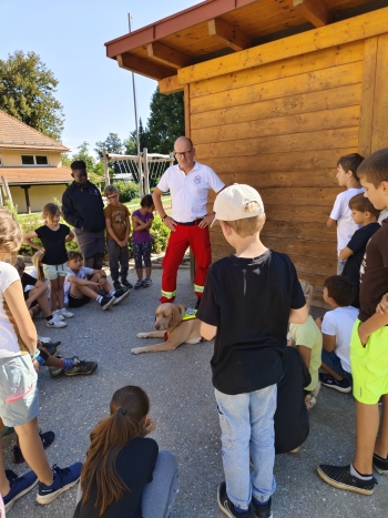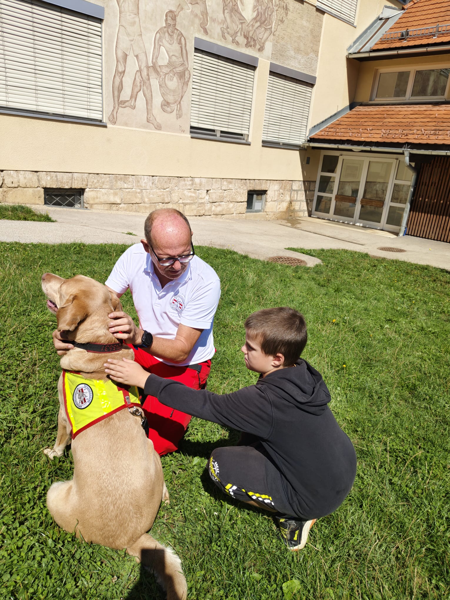 Robert Krebs von der Staffel Glantal besuchte mit seiner Kira den Hort St. Kanzian. Spielerisch brachte er den Kindern die Rettungshundearbeit näher, die Streicheleinheiten für Rettungshündin Kira durften dabei natürlich nicht fehlen.