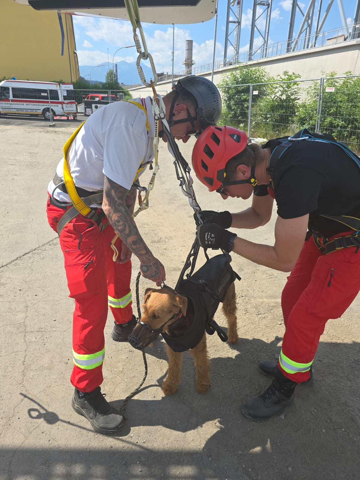 Ein Teil unserer Teams trainierte im beeindruckenden Trümmergebiet am Erzberg, während für die anderen Flächen-, Weg- und Kettensuche, Unterordnung und Gewandtheit am Plan standen. Auch der Spaß kam nicht zu kurz – mit Bootfahren, Abseilen und einem gemeinsamen Wandertag. 💪🚁🌲