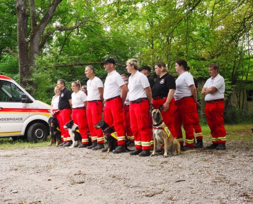 Letztes Wochenende fand eine Einsatzübung statt. 9 Hundeführer*innen und 11 Helfer*innen stellten sich 2 Wegsuchen und 1 Flächensuche unter einsatznahen Bedingungen.
