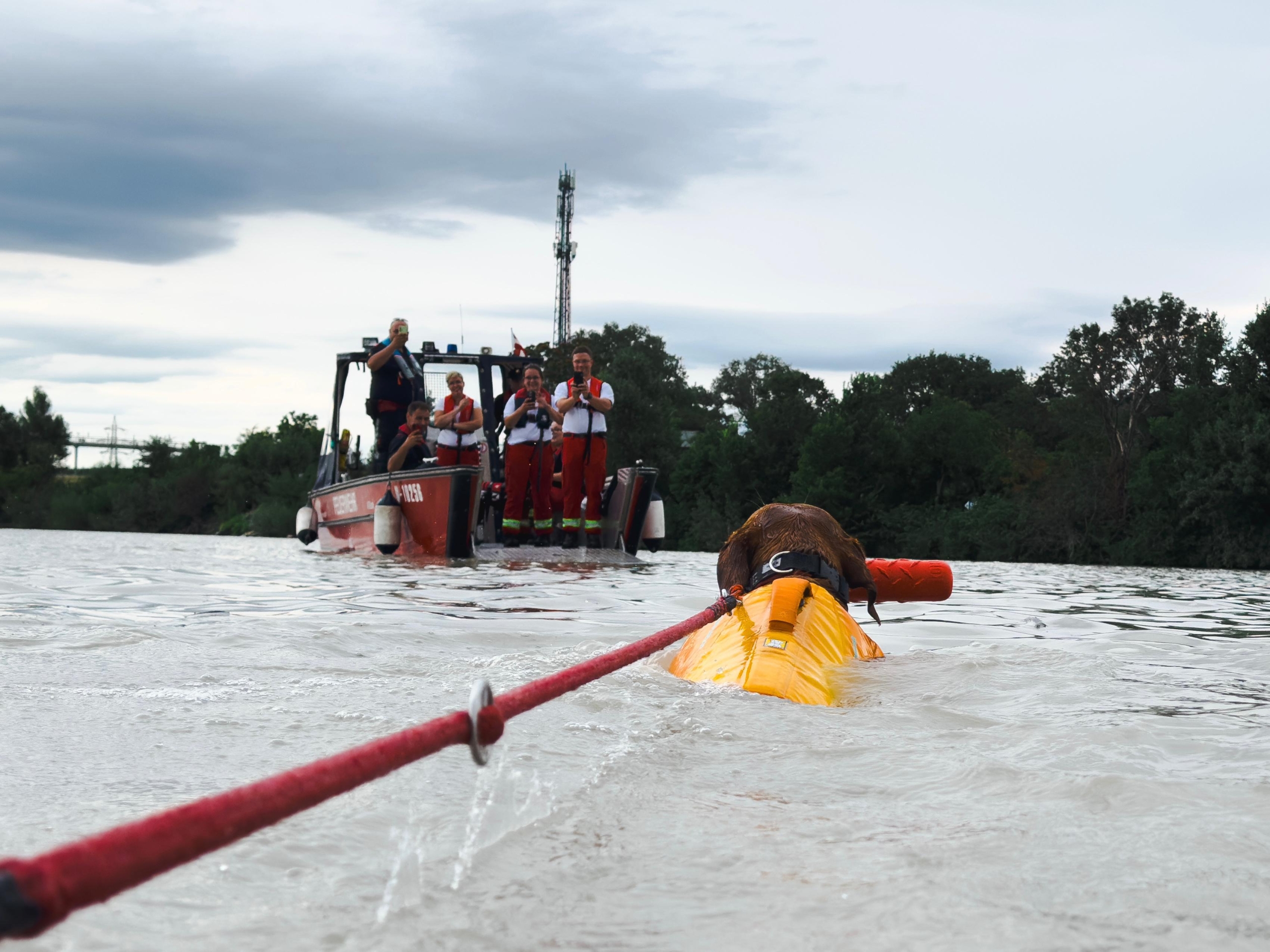 Am 13. Juli lud der Wasserdienst der freiwilligen Feuerwehr Langenzersdorf zu einer gemeinsamen Übung. Nach einer Gewöhnungsrundfahrt mit den Booten konnten sich unsere Hunde im Zuge einer Bergeübung in der Donau abkühlen.