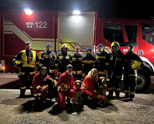Drei Hundeführerinnen der Staffel Feldkirchen nahmen an einer Übung der FF Pritschitz teil. Im Übungsszenario war ein Gebäude eingestürzt, in welchem drei Personen vermisst wurden.