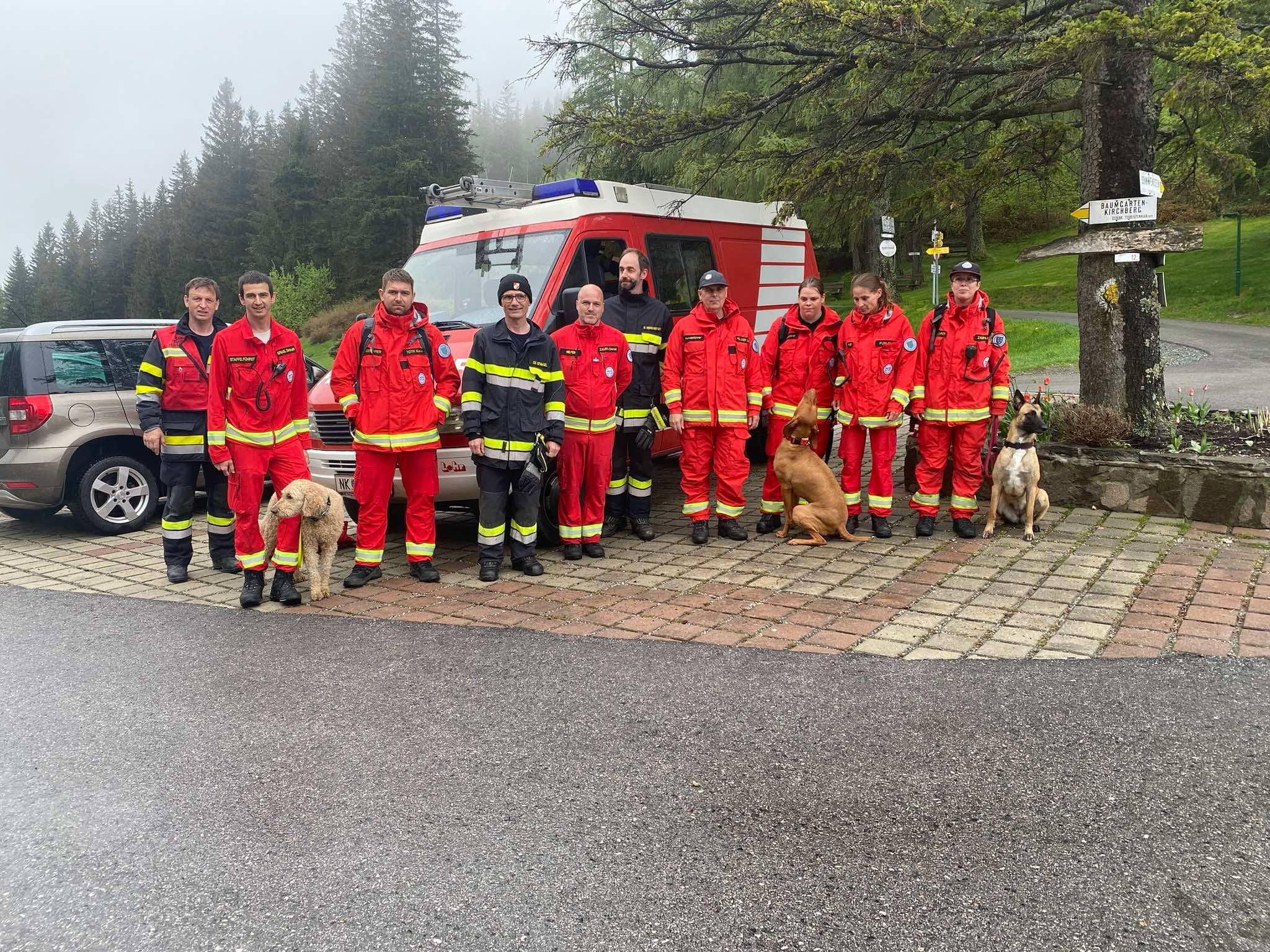 Vor Ort waren die Polizei, Polizei-Drohne, Libelle, Polizeidiensthundeführer, umliegende Feuerwehren, ASBÖ Rettungshundestaffel Purkersdorf, ÖHU Suchhundestaffel, Rettungshunde Niederösterreich, RK Suchhunde und wir. Vielen Dank auch an die Freiwillige Feuerwehr für die Verpflegung.