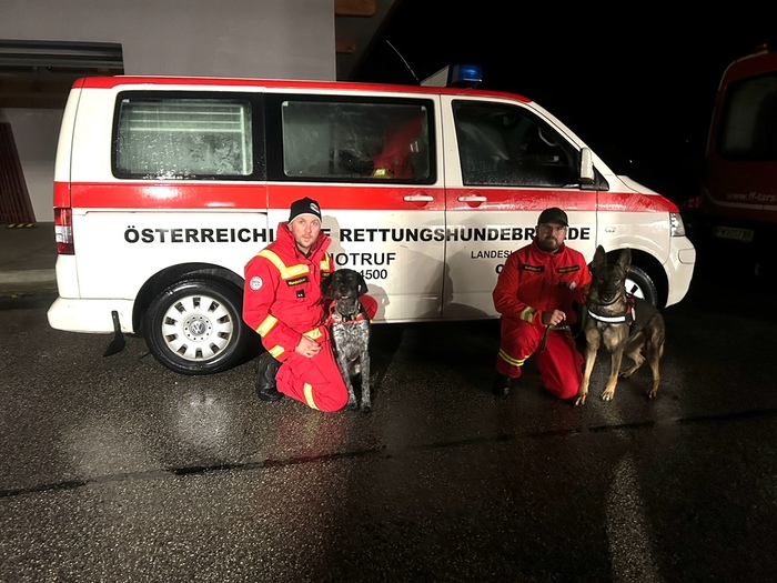 Vor Ort begannen die Teams unverzüglich mit der Suche. Eine besondere Erwähnung verdient der Einsatz von Hündin „Delta“, die von Dominik Schernthaner geführt wurde. Delta lief zielstrebig in ein leerstehendes Gebäude und begann plötzlich laut zu bellen. Sie hatte die vermisste Person gefunden! Auch Muyo von Hundeführer Gian Vorster bestätigte mit seinem Bellen den Fund. Glücklicherweise war die Frau wohlauf und konnte an das Rote Kreuz übergeben werden.
