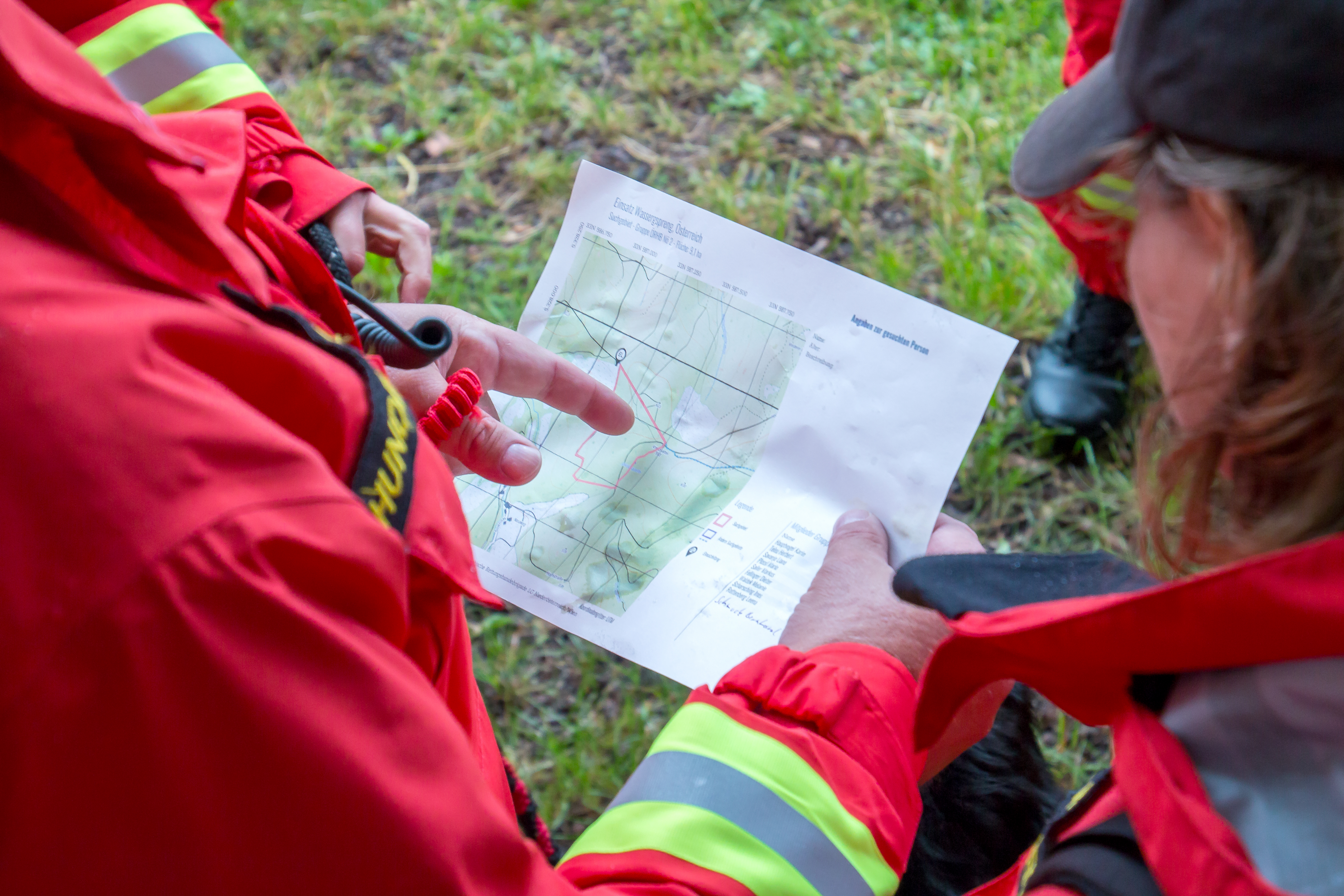 Nach Absprache zwischen den jeweiligen Einsatzleitern unter Leitung der Bergrettung wurden die einzelnen Suchgebiete auf die Bergrettung, die Drohnen und uns aufgeteilt. Wir zeigten unser Können bei einer Flächen- und Wegsuche, wo jeweils mehrere Kinder am Hochstand oder eingeklemmt unter Baumstämmen gefunden wurden!