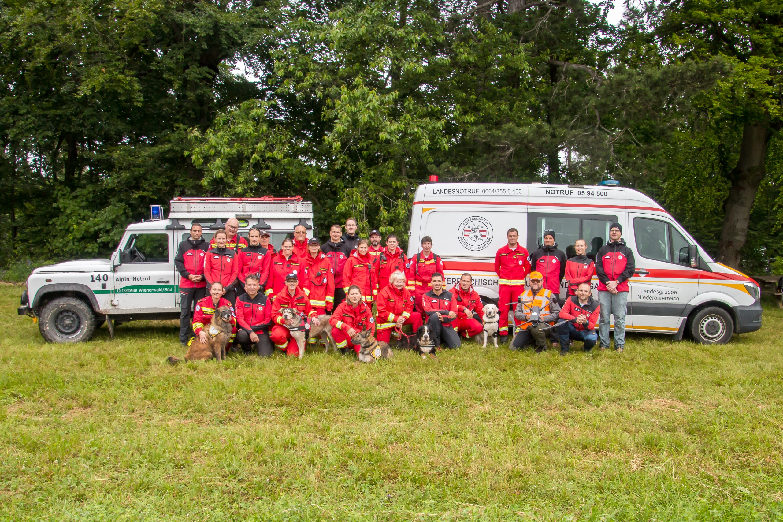 Vom Treffpunkt aus wurden 5 Hundeführer und 10 Helfer aus den Staffeln Brunn am Gebirge, Wienerwald und Helenental mithilfe unseres Einsatzfahrzeuges und Fahrzeugen des Bergrettungsdienstes zur Einsatzstelle transportiert. Dort erhielten wir die Information, dass eine Gruppe von Kindern bei einer Wanderung von einem Unwetter überrascht wurde und verloren gegangen ist!