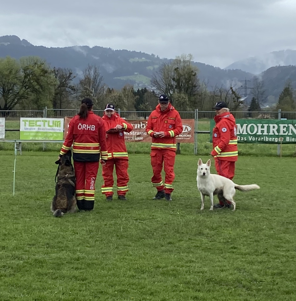 Am 16.4.2023 fand die Einsatzprüfung für die Rettungshundeteams der ÖRHB Landesgruppe Vorarlberg statt. Unsere Hundeführer*innen traten mit Ihren Hunden zur Flächenprüfung A und B an. Die Prüfungen beinhalten neben einer Flächen- und einer Wegsuche auch die Sparten Unterordnung und Gewandtheit.