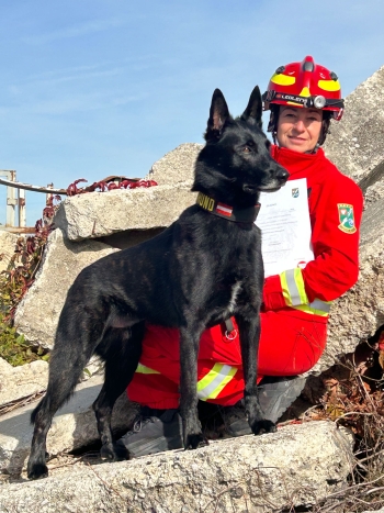 Anita Truschnig mit „Captain Chaos vom Hohen Ursprung“ und Evelyn Hiesinger mit „Mato vom Heustadlwasser“ konnten ihre Einsatzfähigkeit verlängern. Petra Stockinger mit „Head over fields Ferdinand-Siegfried“ konnte bei ihrem Erstantritt den AFDRU Einsatztest positiv bestehen. Damit verfügt die ÖRHB über sechs Hundeteams für nationale und internationale Katastropheneinsätze.