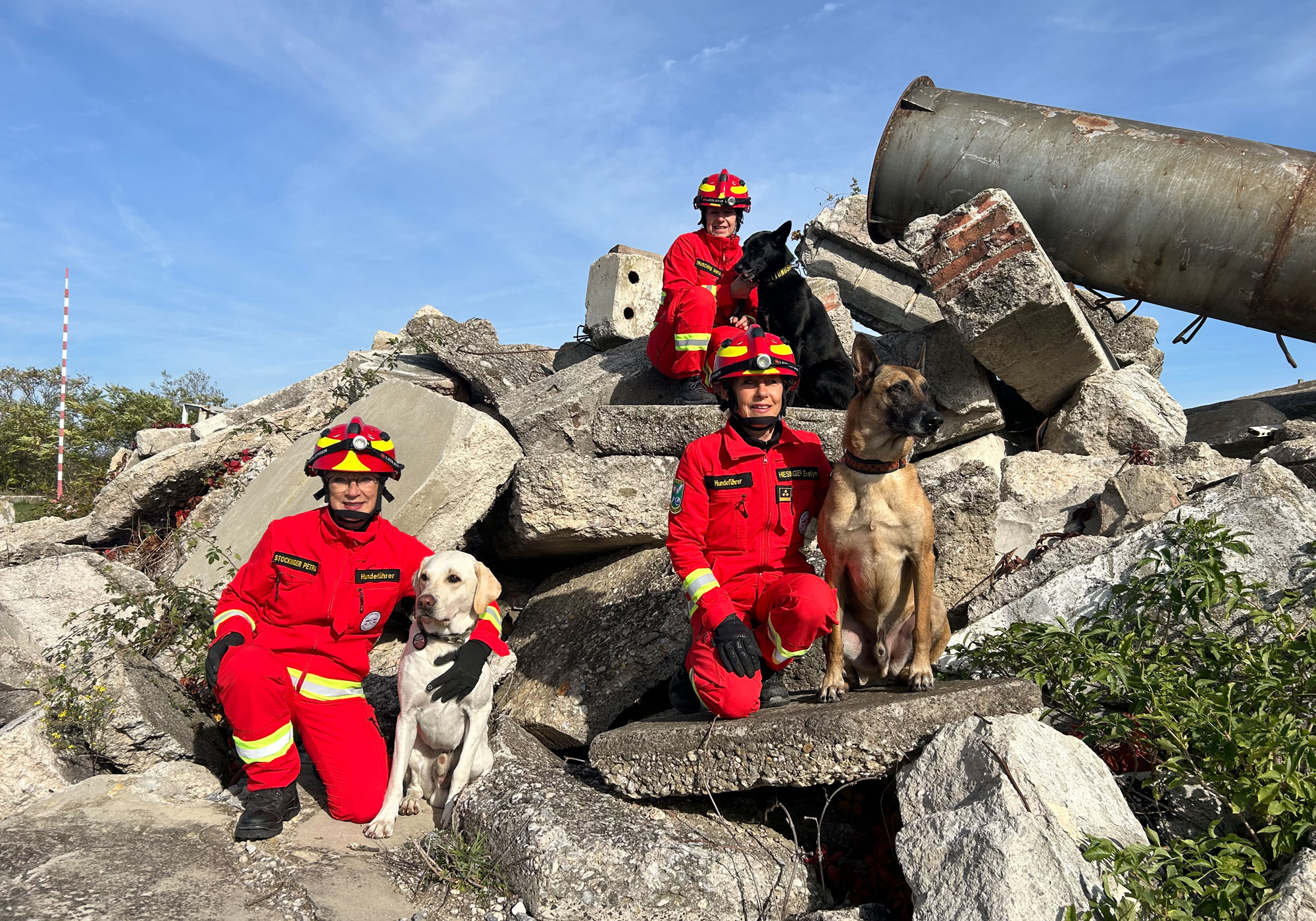 Anita Truschnig mit „Captain Chaos vom Hohen Ursprung“ und Evelyn Hiesinger mit „Mato vom Heustadlwasser“ konnten ihre Einsatzfähigkeit verlängern. Petra Stockinger mit „Head over fields Ferdinand-Siegfried“ konnte bei ihrem Erstantritt den AFDRU Einsatztest positiv bestehen. Damit verfügt die ÖRHB über sechs Hundeteams für nationale und internationale Katastropheneinsätze.