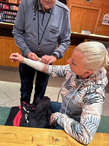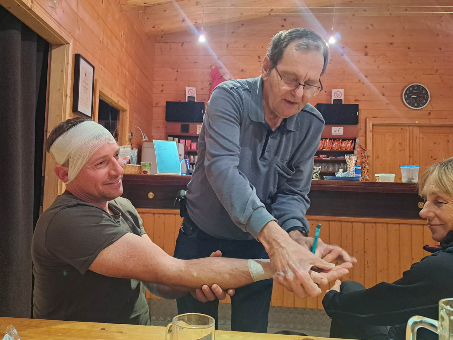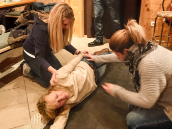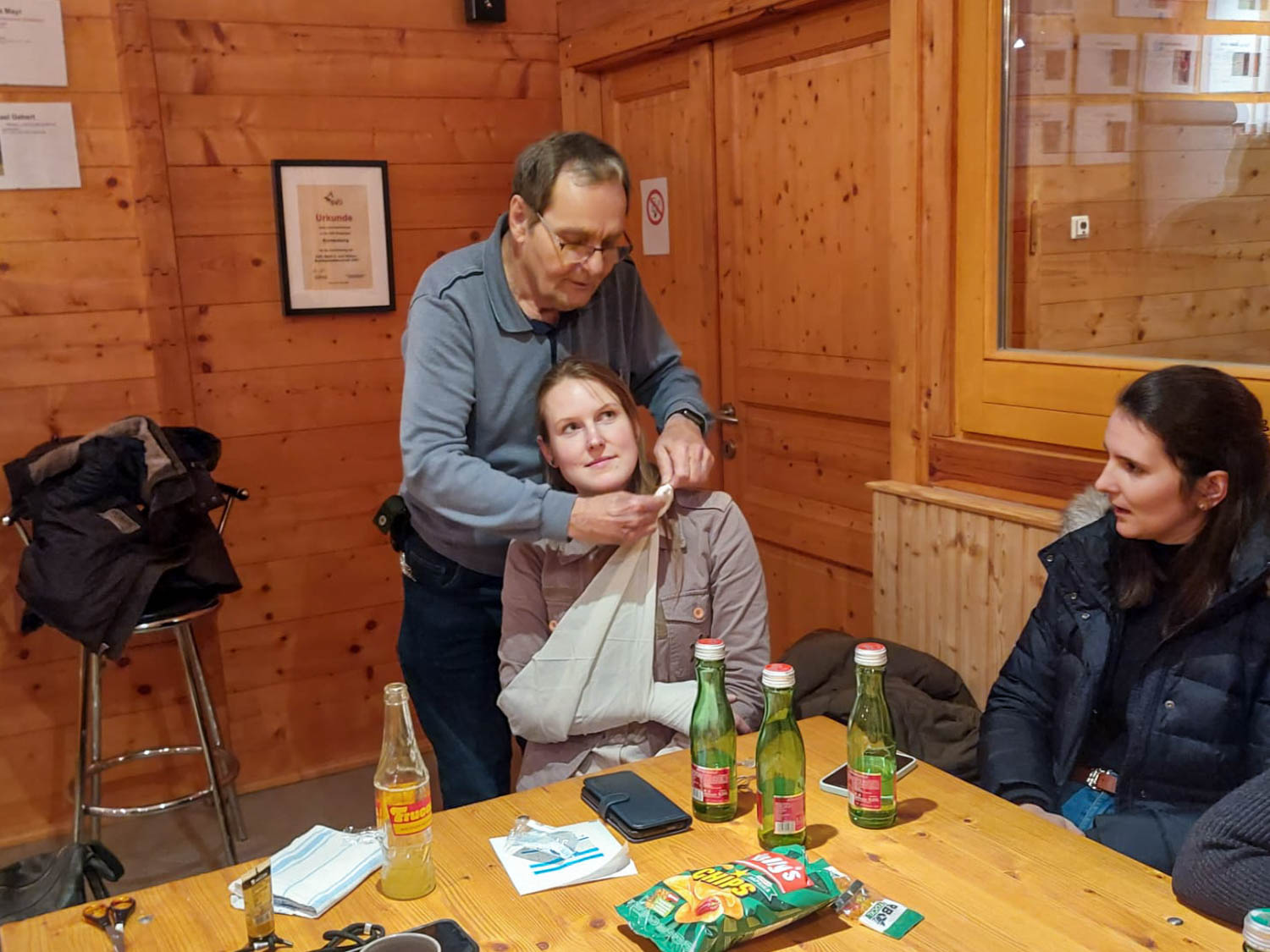 Der Vortragende Johann zog alle Anwesenden mit seinen Erfahrungen und Erlebnissen in seinen Bann. Mit den praktischen Übungen und beim Anlegen der verschiedensten Verbände hatten wir die Möglichkeit an unserem Trainingspartner alles auszuprobieren. Die Stunden vergingen wie im Flug und wir hatten jede Menge Spaß.