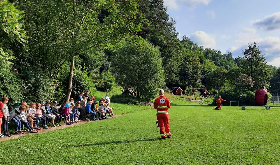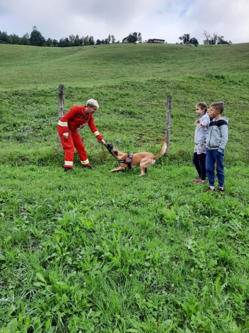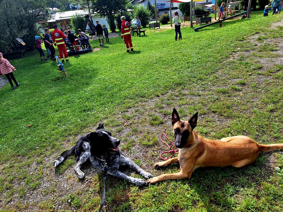 Ferienspiel die 2. – Am 31. August 2023 besuchte die ÖRHB Staffel Hofstetten-Grünau 38 Kinder am Spielplatz in Frankenfels. Neben vielen Infos über die Rettungshundearbeit und dem richtigen Umgang mit Hunden durfte auch selbst bei kleinen Anzeigen und einem Funk-Leitstellenspiel fleißig geübt werden.