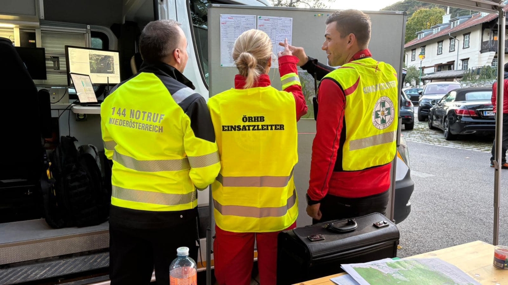 Vergangenen Freitag fand in Mödling eine organisationsübergreifende Übung statt. Unter den Teilnehmer:innen waren 90 Personen vom Österreichischen Bergrettungsdienst (Ortsstelle Wienerwald Süd, Ortsstelle Wien, Sondergruppe Drohnen), der Freiwilligen Feuerwehr Mödling, der Österreichischen Rettungshundebrigade, dem Österreichischen Bundesheer / Theresianische Militärakademie, vom Notruf Niederösterreich und LeoMobil.