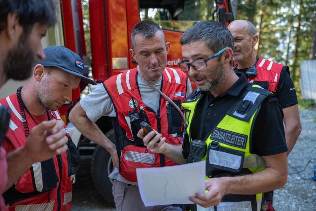 Wir bedanken uns bei den Feuerwehren Großvolderberg, Volders und der Berufsfeuerwehr Innsbruck (Drohne) sowie bei den Hundeführern der Bergrettung für die kameradschaftliche Zusammenarbeit während der gesamten Übung.
