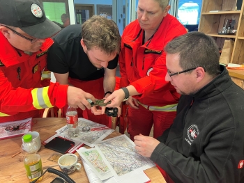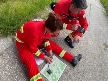 Schwerpunkt des ersten Lehrgangswochenendes war die Theorie. Es wurde eifrig an der Geländekunde und auf analogen Karten gearbeitet, Höhenschichtenlinien und Koordinaten erhoben und Entfernungen berechnet. Auch der Umgang mit Kompass, GPS-Geräten und Handy-Apps zur Navigation wurde inhouse geübt. Ebenso standen die Funkgespräche am Programm. Unter dem Motto „Es darf nicht zum Spaß gefunkt werden, Funken soll aber auch Spaß machen!“ hatten sich die Teilnehmer:innen viel zu sagen – natürlich per Funk. Da es auch den Gruppenkommandant:innen obliegt, im Falle des Auffindens einer vermissten Person die richtigen Entscheidungen zu treffen, war das Durchbesprechen einer solchen Situation wichtiges Thema im ersten Teil des Lehrgangs. Grundsätze der Ersten Hilfe wurden wiederholt, aber auch Inputs zur Verarbeitung der psychischen Belastung für die Einsatzkräfte selbst wurden vermittelt.