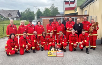 Und dann kam das dritte und letzte Wochenende der Ausbildung als Gruppenkommandant:in, das mit Respekt erwartete Prüfungswochenende. Die vom Lehrgangsleiter oftmals als große Hürde angedrohte Abschlussprüfung erwies sich letztendlich glücklicherweise als schaffbar. Ein rund zehn Kilometer langer Orientierungsmarsch führte durch die schöne Landschaft von Gröbming. Mit Karte, Kompass und teilweise mit dem Hund als Begleitung ausgerüstet hantelten sich die Teilnehmer:innen von einem markierten Punkt zum nächsten. Die anschließende mündliche Prüfung verlangte vielen zwar einiges ab, wurde jedoch gut gemeistert. Wir gratulieren den neuen Gruppenkommandant:innen der ÖRHB sehr herzlich zur erfolgreich absolvierten Ausbildung!