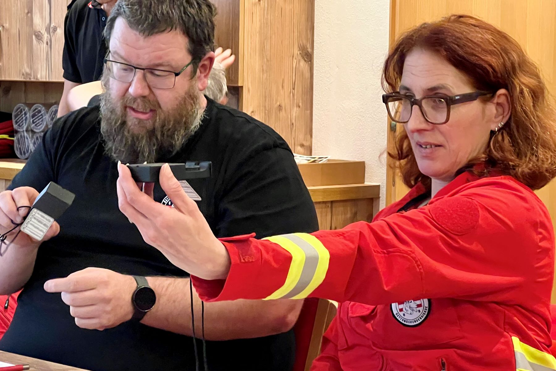 Schwerpunkt des ersten Lehrgangswochenendes war die Theorie. Es wurde eifrig an der Geländekunde und auf analogen Karten gearbeitet, Höhenschichtenlinien und Koordinaten erhoben und Entfernungen berechnet. Auch der Umgang mit Kompass, GPS-Geräten und Handy-Apps zur Navigation wurde inhouse geübt. Ebenso standen die Funkgespräche am Programm. Unter dem Motto „Es darf nicht zum Spaß gefunkt werden, Funken soll aber auch Spaß machen!“ hatten sich die Teilnehmer:innen viel zu sagen – natürlich per Funk. Da es auch den Gruppenkommandant:innen obliegt, im Falle des Auffindens einer vermissten Person die richtigen Entscheidungen zu treffen, war das Durchbesprechen einer solchen Situation wichtiges Thema im ersten Teil des Lehrgangs. Grundsätze der Ersten Hilfe wurden wiederholt, aber auch Inputs zur Verarbeitung der psychischen Belastung für die Einsatzkräfte selbst wurden vermittelt.