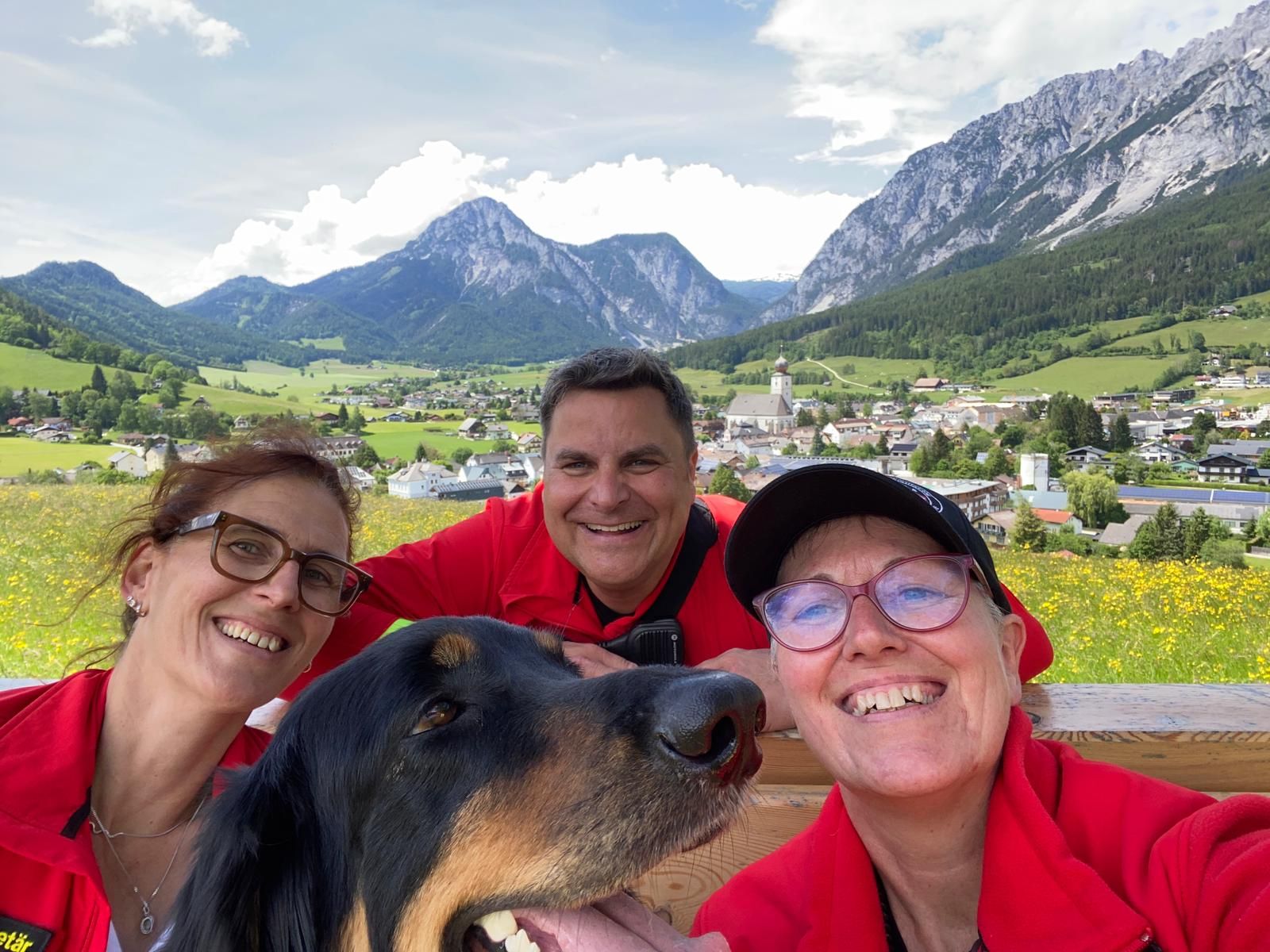 Und dann kam das dritte und letzte Wochenende der Ausbildung als Gruppenkommandant:in, das mit Respekt erwartete Prüfungswochenende. Die vom Lehrgangsleiter oftmals als große Hürde angedrohte Abschlussprüfung erwies sich letztendlich glücklicherweise als schaffbar. Ein rund zehn Kilometer langer Orientierungsmarsch führte durch die schöne Landschaft von Gröbming. Mit Karte, Kompass und teilweise mit dem Hund als Begleitung ausgerüstet hantelten sich die Teilnehmer:innen von einem markierten Punkt zum nächsten. Die anschließende mündliche Prüfung verlangte vielen zwar einiges ab, wurde jedoch gut gemeistert. Wir gratulieren den neuen Gruppenkommandant:innen der ÖRHB sehr herzlich zur erfolgreich absolvierten Ausbildung!