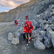 Nach der Alarmierung begann unser erster Einsatzabschnitt mit einer Kettensuche in einem herausfordernden Waldgebiet. Mit voller Konzentration und großem Engagement arbeiteten unsere Teams Hand in Hand, um die vermissten Personen zu lokalisieren, medizinisch erst zu versorgen und an den Rettungsdienst zu übergeben.