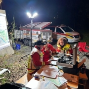 - Ausrüstung: Damit wir im Ernstfall schnellstmöglich koordiniert startbereit sind, ist es natürlich auch wichtig zu wissen, was wo in unserem Einsatzanhänger zu finden ist – er ist unsere Einsatzzentrale im Ernstfall.