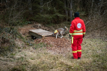Einen Halbtag verbrachten die Hundeführer:innen und Helfer:innen am bekannten tollen, mehrere Hektar großem, Waldgrundstück von Markus Dlouhy. Er hat wieder seine einzigartigen und auch ein paar ganz neue Verstecke zur Verfügung gestellt. Das Highlight war ein Hängematten-Versteck unter einem Steg: von oben weder für HF noch Hunde sichtbar. Alle Hunde wurden ihrem Ausbildungsstand entsprechend gearbeitet und es war wieder für jeden etwas dabei!