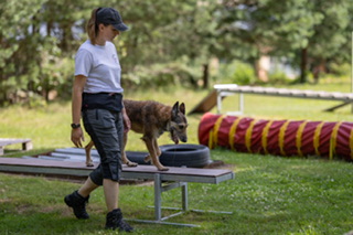 Danach wurden die Teilnehmer:innen in Gruppen eingeteilt und es wurde mit den praktischen Übungen begonnen. Diese konzentrierten sich auf die grundlegenden Suchtechniken im Trümmergelände, wobei der Fokus auf der korrekten Anzeige eines Fundes durch die Hunde lag. Für viele der teilnehmenden Teams war es die erste Gelegenheit, in einem realitätsnahen Trümmerfeld zu trainieren, was sowohl für die Hunde als auch für die Hundeführer:innen eine wertvolle Erfahrung darstellte. Auch eine Unterordnungs-Station am Hundeplatz stand an der Tagesordnung. Jeder neue Hundeplatz mit anderen (als den von zuhause gewohnten) Geräten kann vor allem für unerfahrene Hunde eine Herausforderung darstellen und so nutzen wir auch diese Chance, um uns gemeinsam mit unseren Hunden weiterzuentwickeln 💪🏻