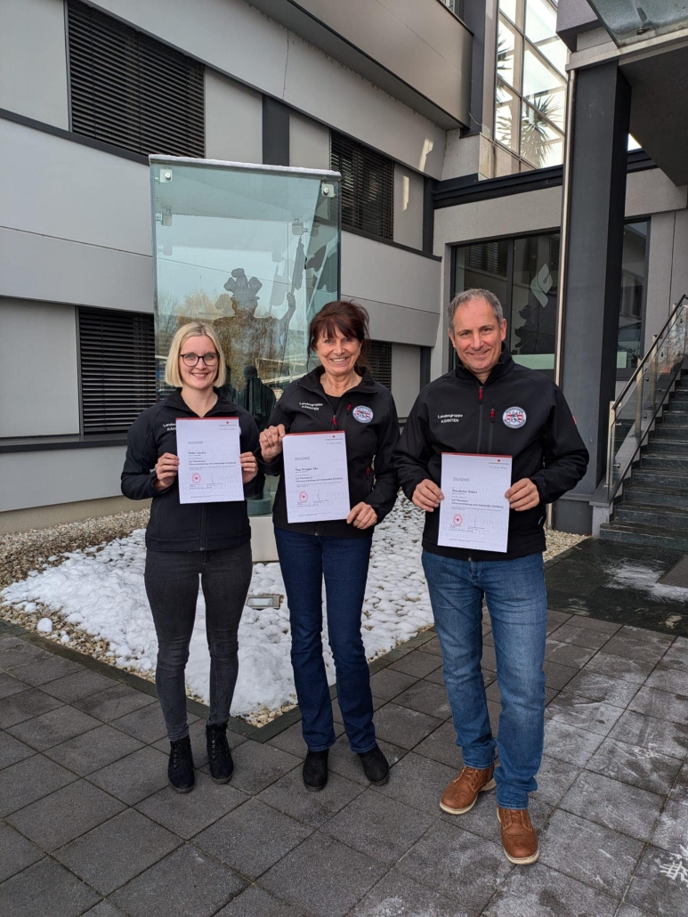 Robert Staudacher (Staffel Finkenstein), Sandra Müller (Staffel Villach) und Elke Strugger (Staffel Klagenfurt) haben im Herbst die Ausbildung zum SvE-Peer, welche vom Österreichischen Roten Kreuz angeboten und durchgeführt wird, begonnen und am 24.11.2024 erfolgreich abgeschlossen.