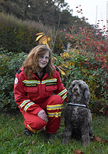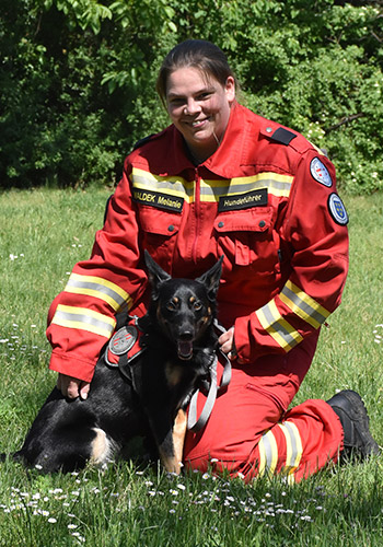 Eines Tages schlug mir dann mein Schwiegervater vor doch einmal ein Training einer Rettungshundestaffel zu besuchen. Nachdem ich die ersten Trainings mit Merlin absolviert hatte, war ich erstaunt wie schnell er lernte und sich entwickelte. Unser gemeinsamer Weg führte uns dann zum ÖRHB, wo Merlin und ich herzlich empfangen wurden. Bis heute fühle ich mich in meiner Staffel sehr wohl.