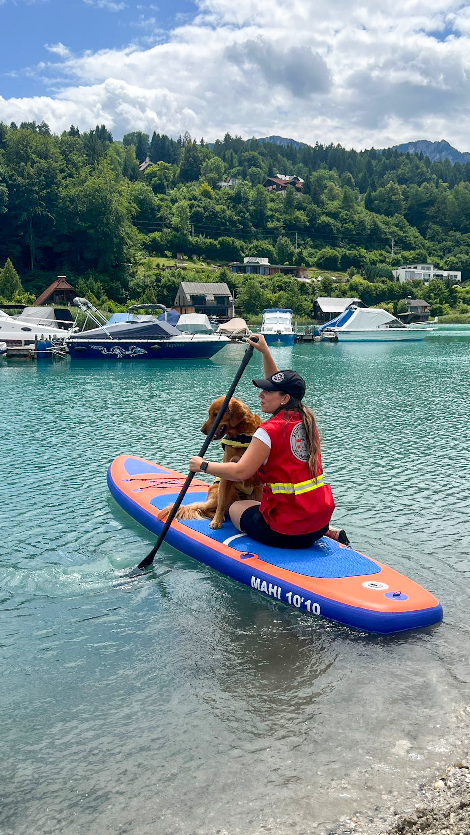 Am 10. und 11. Juli fanden unsere Schnuppertage am wunderschönen Faaker See statt. Die Sparte Wasser wurde als Vorbereitung für interessierte Hundeführer:innen präsentiert und die Hunde wurden durch unsere Trainer:innen vorsichtig an die Wasserarbeit herangeführt.