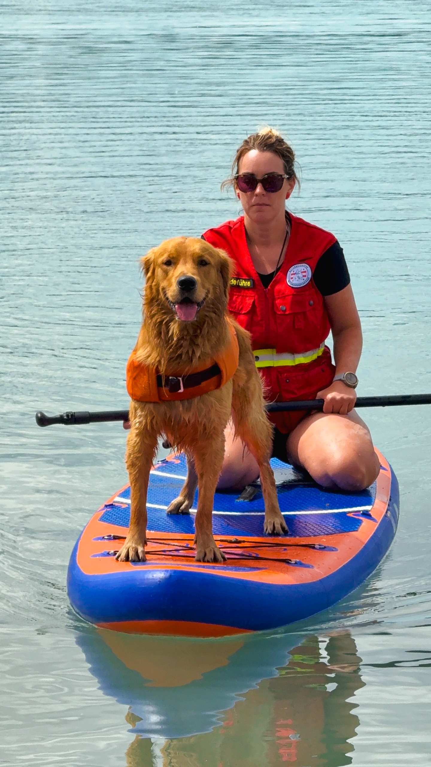 Die teilnehmenden Rettungshunde aus verschiedenen Landesgruppen lernten das richtige Schwimmen, Apportieren aus dem Wasser oder Surfbrett fahren und sammelten erste Erfahrungen beim „Retten“ einer ertrinkenden Person. Mittels Stationsbetrieb wurde ein buntes Programm geboten und der Grundstein für weitere Lehrgänge gelegt.