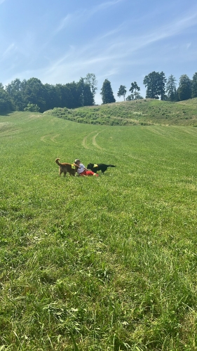 Zudem hatten die Besucher*innen die Möglichkeit, bei unserem Informationsstand ein Bild mit einem unserer Rettungshunde zu machen.