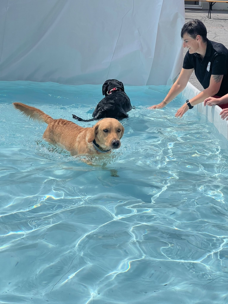 Die Staffel Villach war neben zahlreichen weiteren Einsatzorganisationen ebenfalls vor Ort und konnte den Besucher:innen einen Einblick in die Rettungshundearbeit gewähren. Zudem gab es noch eine Vorführung unserer Rettungshunde – anschließend durfte die Abkühlung im kühlen Nass natürlich nicht fehlen.