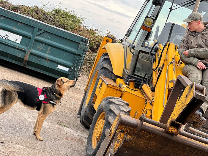Unterschiedliche Untergründe im Wald und in leerstehenden Gebäuden werden neugierig begutachtet. Nun wird das Verbellen der „Opfer“ geübt.
