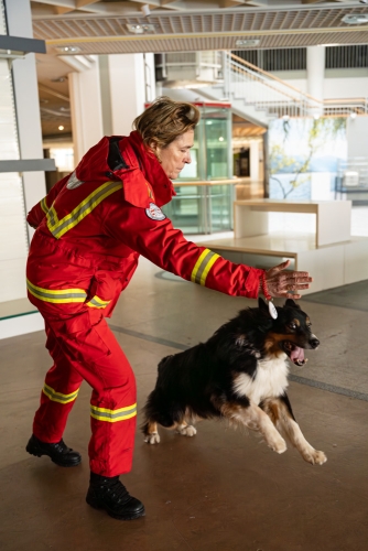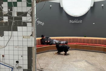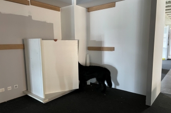 Das ist eine sehr tolle und wichtige Möglichkeit, um die Ausbildung unserer Hunde zu vertiefen. Die unterschiedlichen Bodenbeschaffenheiten, Lichtverhältnisse und Verstecke über mehrere Stockwerke sind eine ganz neue Herausforderung für die Hunde.