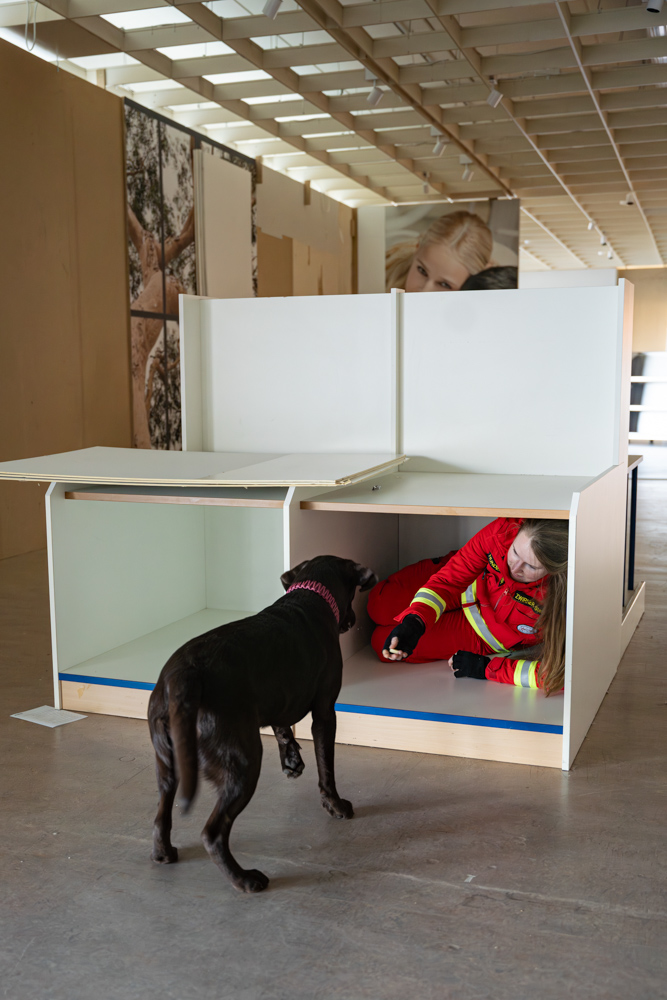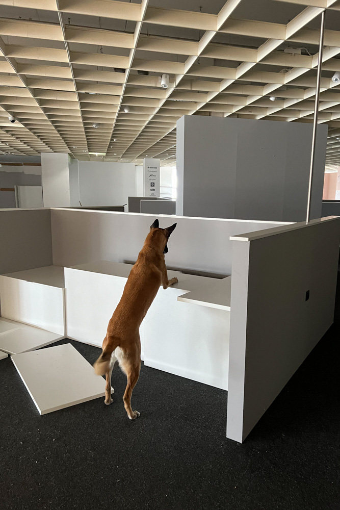 Das ist eine sehr tolle und wichtige Möglichkeit, um die Ausbildung unserer Hunde zu vertiefen. Die unterschiedlichen Bodenbeschaffenheiten, Lichtverhältnisse und Verstecke über mehrere Stockwerke sind eine ganz neue Herausforderung für die Hunde.