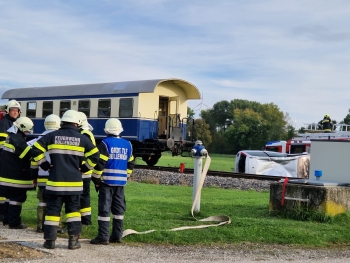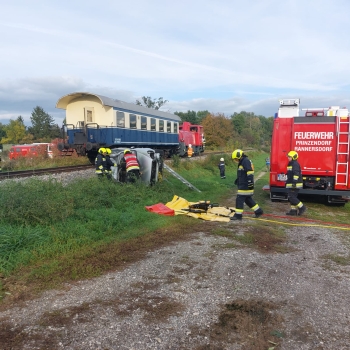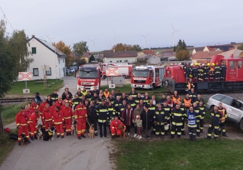 15 unserer Mitglieder, unterstützt von Helfer:innen der ebenfalls teilnehmenden Feuerwehren aus der Umgebung (Prinzendorf, Wilfersdorf, Bullendorf, Hobersdorf) waren in drei Suchgebieten unterwegs. Das Übungsszenario war ein Zugunglück mit mehreren, teils verletzten Personen, die sich im Schock und in Panik vom Unglücksort entfernt hatten.